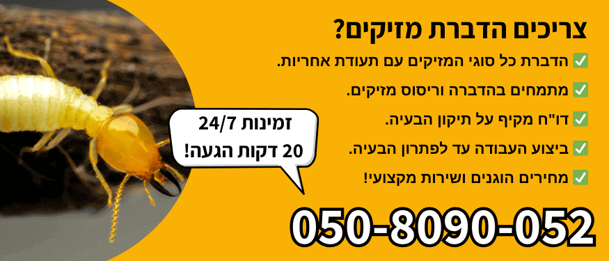 - הזמינו חברת הדברה בהקדם: ככל שתטפלו בבעיית המזיקים מהר יותר, כך ימנעו נזקים חמורים יותר.